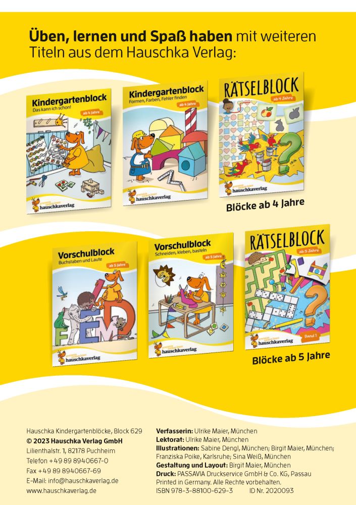 Kindergartenblock ab 4 Jahre – Übungsblock für den Kindergarten ✅ Schneiden, kleben, basteln ✅ Altersgerechte Übungen zur Förderung der Feinmotorik, insbesondere den Umgang mit Schere und Kleber ✅ Rätsel und Denkspiele zum genauen Hinsehen ✅ Förderung der Ausdauer, Konzentrationsfähigkeit und der eigenen Kreativität ✅ Abwechslungsreiche und kindgerechte Aufgaben ✅ Sinnvolle Beschäftigung und Spaß für zuhause und unterwegs ✅ Zur gezielten Vorbereitung auf die Vorschule Fakten zu diesem Kindergartenblock ✅ DIN A5-Block ✅ 64 Seiten ✅ Liebevoll farbig illustriert ✅ Mit Lösungsteil am Ende des Blocks Hauschka Kindergarten- und Vorschulblöcke Unsere Übungsblöcke für Kindergarten und Vorschule bieten Kindern zwischen 3 und 7 Jahren die ideale Möglichkeit, spielerisch wichtige Fähigkeiten zu entwickeln und zu stärken – als perfekte Vorbereitung auf die Schule. Die Kindergartenblöcke richten sich an Kinder im Alter von 3-4 Jahren und laden sie zum Kombinieren, Rätseln und Vergleichen ein. Durch die altersgerechten Aufgaben können die Kleinen zeigen, was sie schon können und gewinnen dabei Selbstbewusstsein. Alle Übungen fördern die Kinder spielerisch und helfen ihnen, Fähigkeiten zu erlangen, die eine wichtige Grundlage für die Vor- und Grundschule bilden. Für ältere Kindergartenkinder ab 5 Jahren eignen sich die Vorschulblöcke zur gezielten Vorbereitung auf die Schule. In abwechslungsreichen Rätseln und Übungen werden die Konzentrationsfähigkeit und das Durchhaltevermögen gefördert. Die liebevoll illustrierten Aufgaben vermitteln erste mathematische und sprachliche Grundlagen und machen die Kinder Schritt für Schritt fit für den Schuleintritt. Die handlichen Blöcke sind der idealen Begleiter – als Reisespiele, bei langen Wartezeiten, Bahnfahrten, im Restaurant, an verregneten Nachmittagen oder einfach zwischendurch – sie bieten jederzeit eine sinnvolle Beschäftigung!