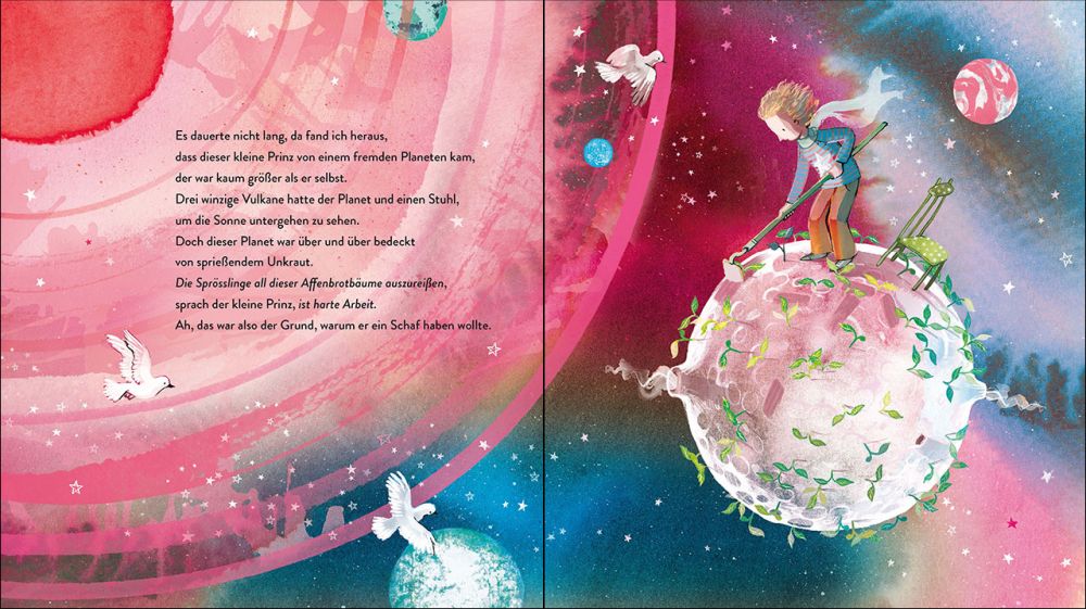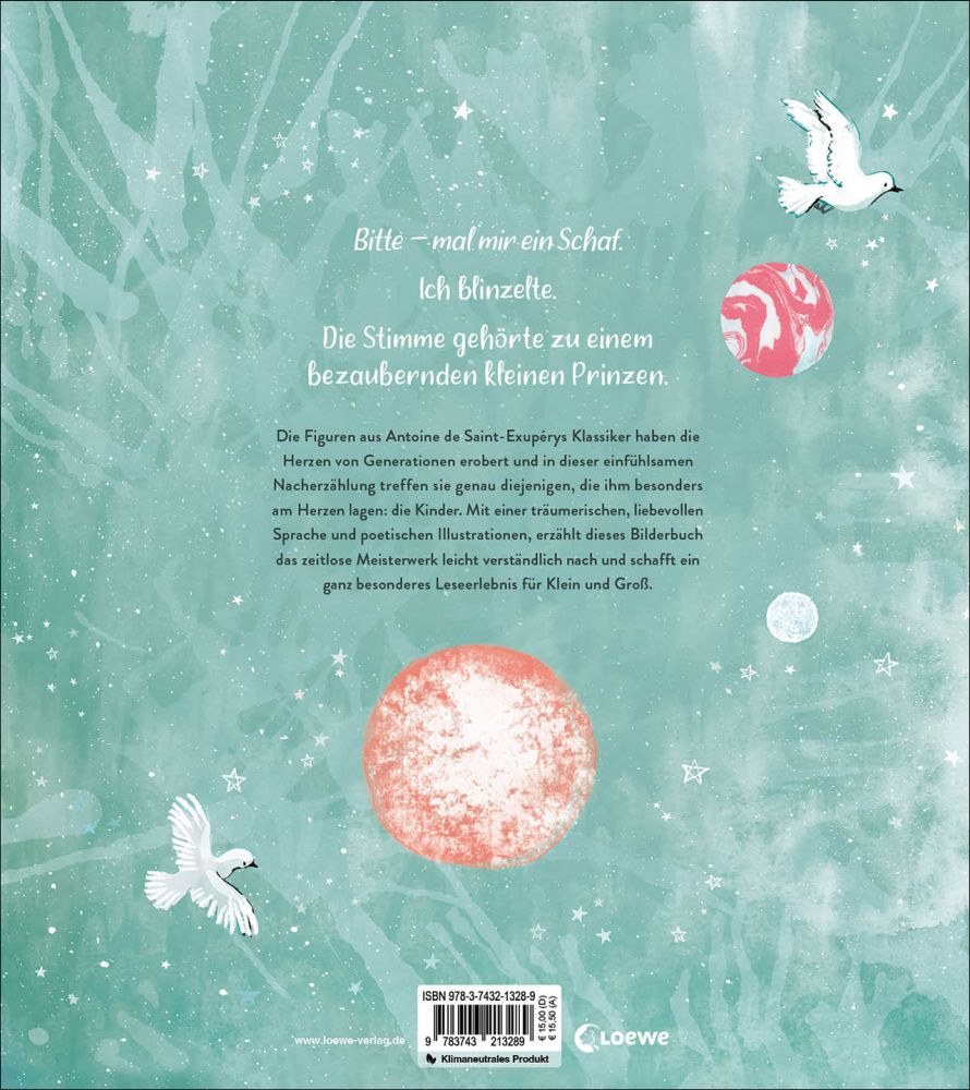 Die Figuren aus Antoine de Saint-Exupérys Klassiker haben die Herzen von Generationen erobert und in dieser einfühlsamen Nacherzählung treffen sie genau diejenigen, die ihm besonders am Herzen lagen: die Kinder. Mit einer leicht träumerischen, liebevollen Sprache und poetischen Illustrationen, erzählt dieses Bilderbuch das zeitlose Meisterwerk leicht verständlich nach und schafft ein ganz besonderes Leseerlebnis für Klein und Groß.
