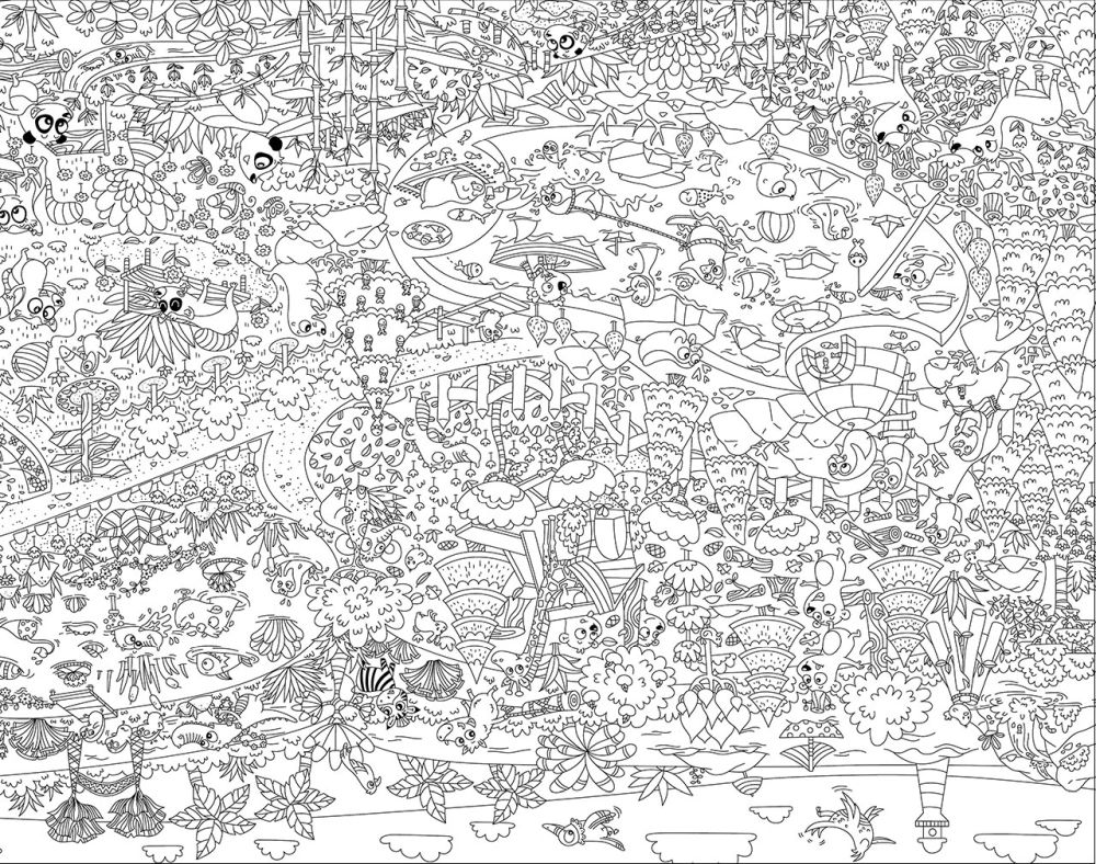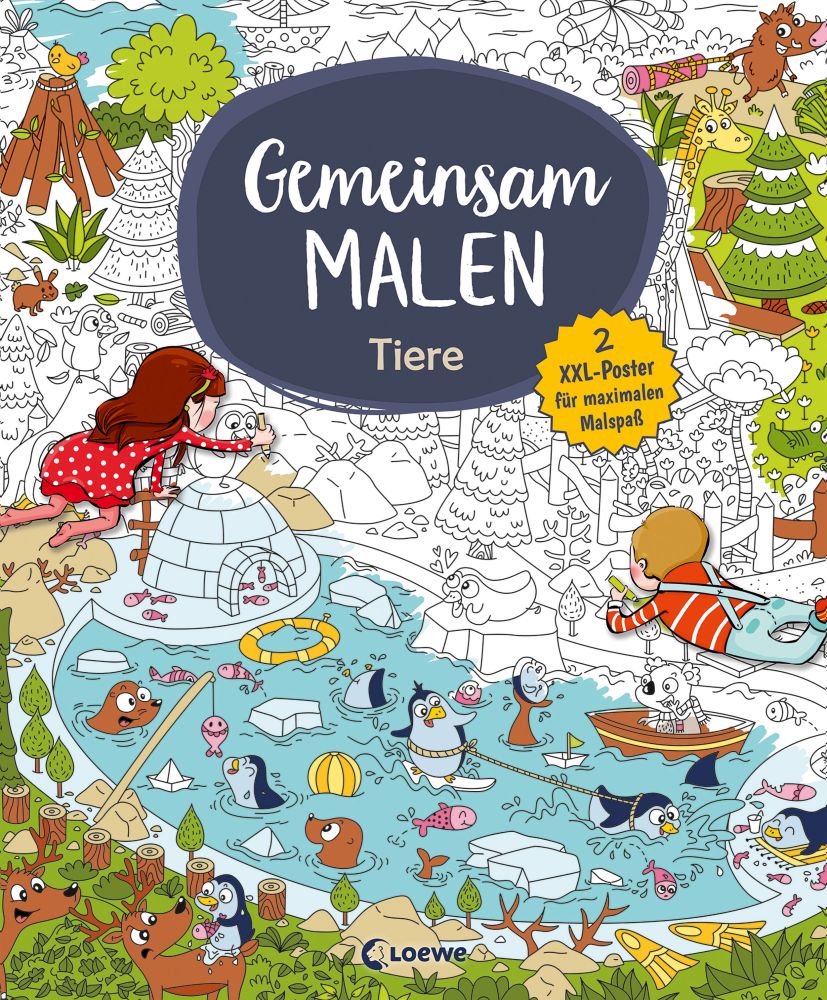 Habt ihr schon mal gesehen, dass ein Panda und ein Nilpferd miteinander spielen? Oder dass Pinguine übers Wasser surfen? Diese und viele andere lustige Details sorgen für extragroßen Ausmalspaß. Schnappt euch eure Stifte und gestaltet zusammen zwei farbenfrohe Poster!