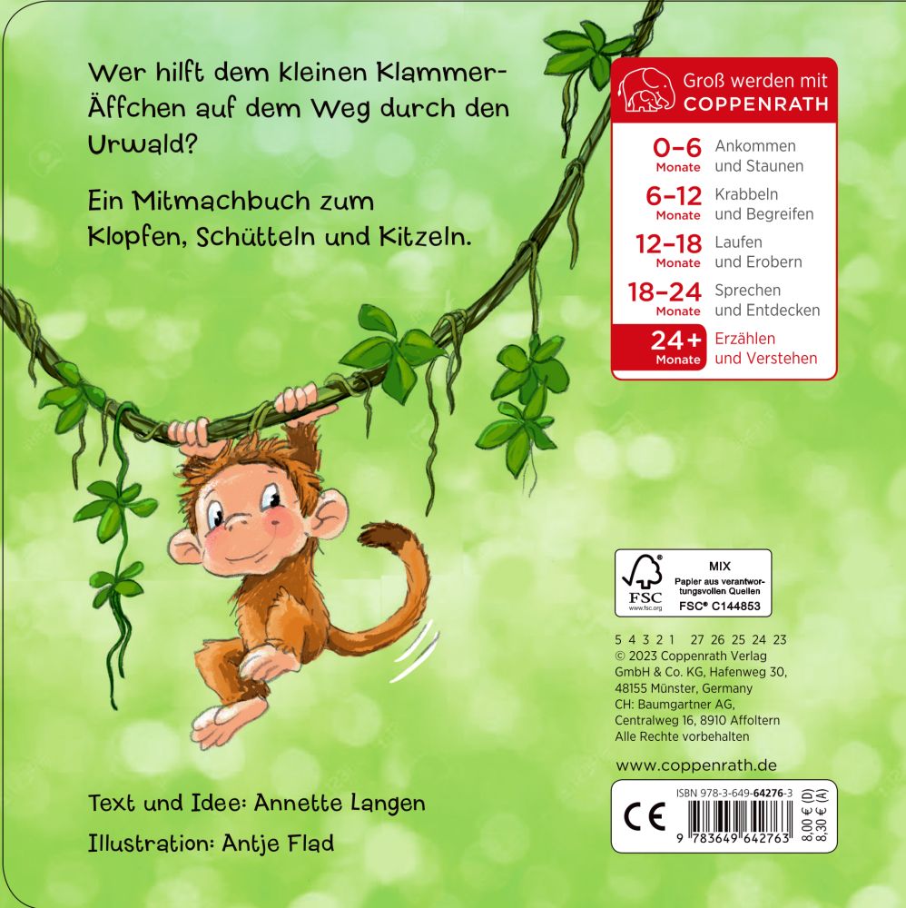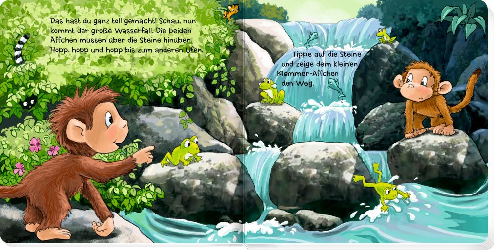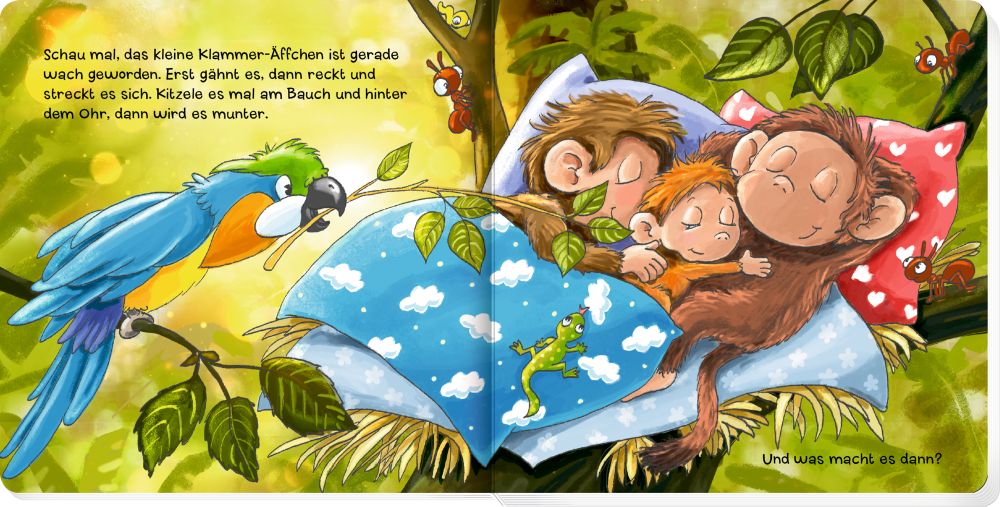 Wer hilft dem kleinen Klammer-Äffchen auf dem Weg durch den Urwald? Ein Mitmachbuch zum Klopfen, Schütteln und Kitzeln.