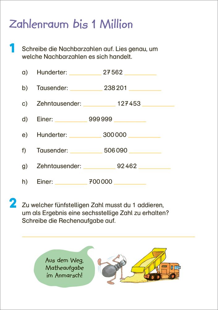Zahlen bis 1 000 000, Textaufgaben und Geometrie. Das tägliche 5-Minuten-Training für zwischendurch oder zuhause, um zu üben, Wissen aufzufrischen und am Ball zu bleiben. Kleine Übungshäppchen lassen sich praktisch in den Tag einbauen. Ausgewählte Übungen am Lehrplan orientiert und mit Lösungen auf der Rückseite. Spaß beim Üben: mit farbenfroh gestalteten Seiten und tollen Ameisensprüchen.