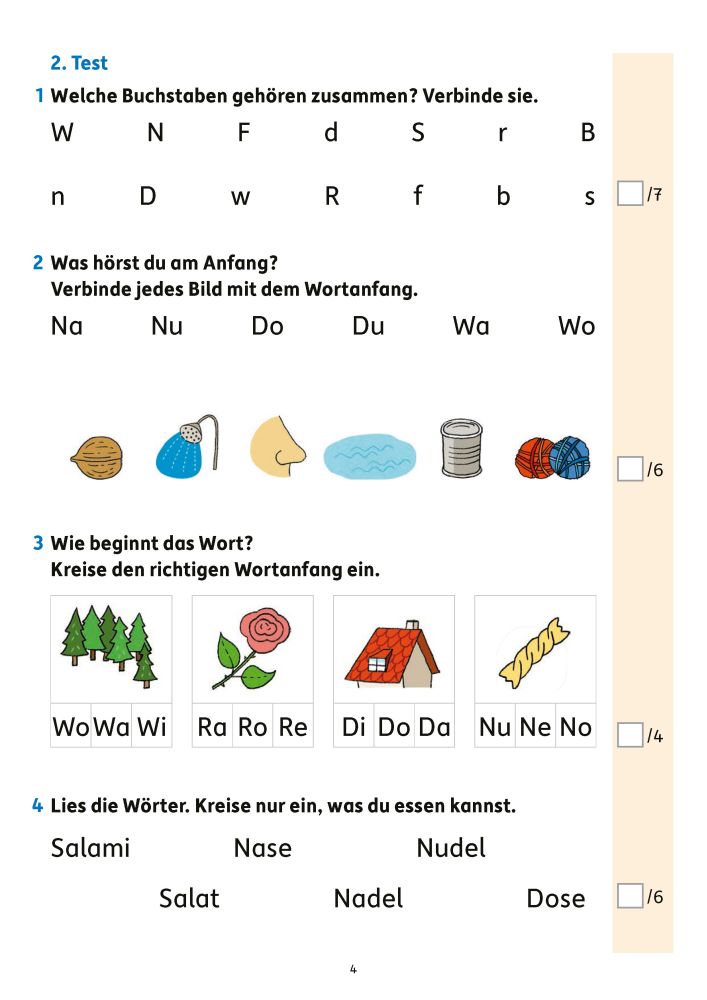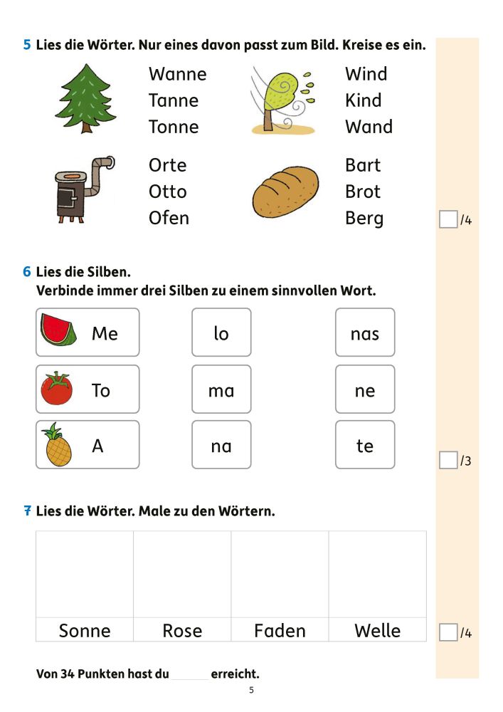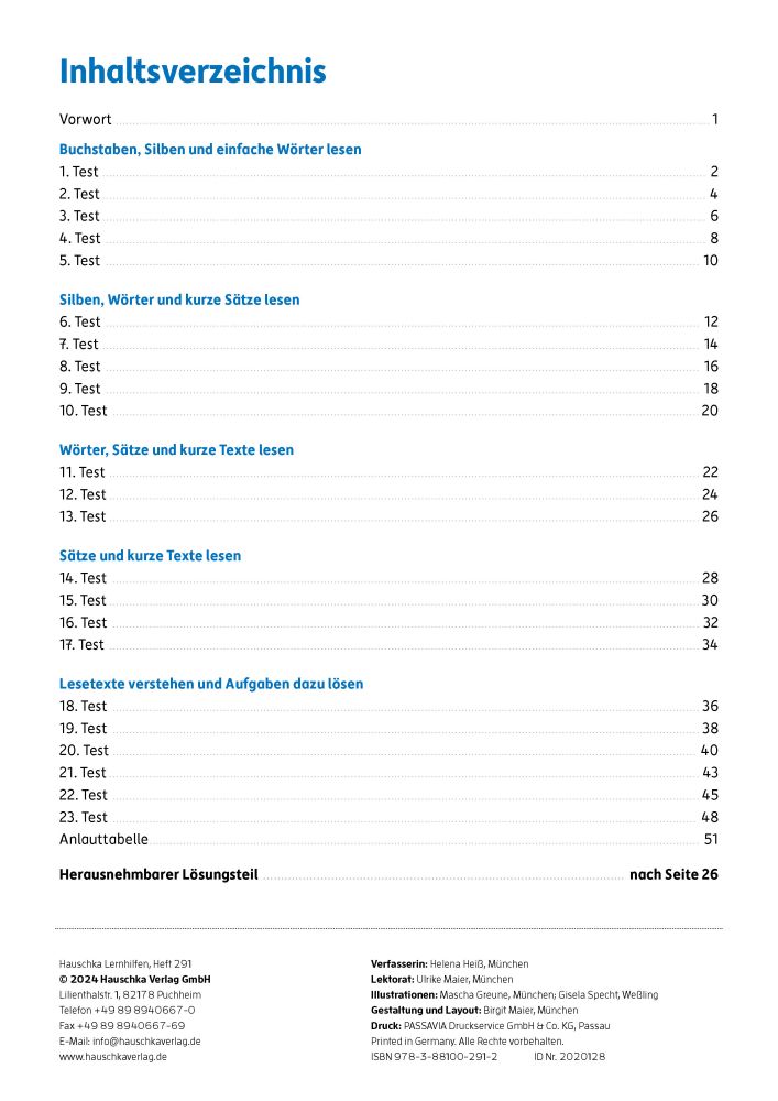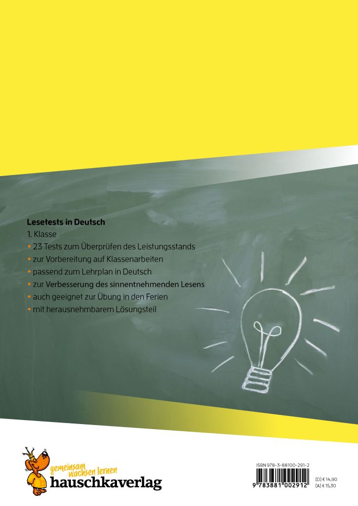 Deutsch 1. Klasse – Lesetests zur Vorbereitung auf Klassenarbeiten ✅ Verschiedene Aufgaben zum Erlesen von Buchstaben, Silben und Wörtern ✅ Anschließend Tests zu ganzen Sätzen und kurzen bzw. längeren Texten mit Verständnisfragen ✅ Inklusive Anlauttabelle zur Laut-Buchstaben-Zuordnung ✅ Tests und Leseproben wie in der Schule: Punktevergabe und ein passendes Symbol vermitteln den Leistungsstand ✅ Zur gezielten Übung für Lernzielkontrollen Fakten zum Übungsheft ✅ DIN-A4-Heft ✅ 80 Seiten mit insgesamt 23 Tests ✅ Liebevoll farbig illustriert ✅ Mit herausnehmbarem Lösungsteil Unsere Testheft-Reihe Keine Angst vor Klassenarbeiten und dem Übertritt! Kleinere und größere Tests gibt es schon in der Grundschule und sie fordern die Kinder heraus, ihr Wissen aufs Papier zu bringen. Die Übungshefte sind eine perfekte Vorbereitung auf alle wichtigen Lernzielkontrollen und den Übertritt. Sie begleiten die Schülerinnen und Schüler von der 1. bis zur 4. Klasse in Mathe, Deutsch, Englisch, beim Lesen und im Sachunterricht. Die klar strukturierten Hefte bieten zu vielen Themen den passenden Trainingstest und bringen so Sicherheit: Was kann ich schon, was muss ich noch üben? Mit Hilfe des Lösungsteils und anhand einer Punkteskala kann die Leistung überprüft und bewertet werden. Alle Übungshefte dieser Reihe wurden von erfahrenen Pädagoginnen und Pädagogen entwickelt und mit Kindern umfassend getestet.