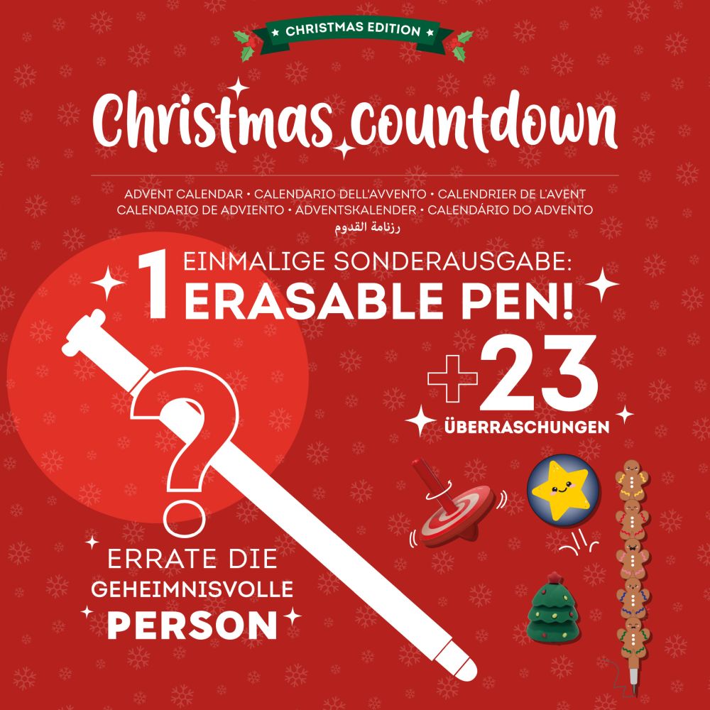 Der „Christmas Countdown“ von Legami Milano ist kein gewöhnlicher Kalender: Jede Klappe birgt ein kleines Geschenk, das mit Witz, Farbe und Liebe zum Detail begeistert. Unter den Highlights befindet sich ein exklusiver löschbarer Gelstift in limitierter Edition – ein echtes Sammlerstück für Schreibwaren-Fans!