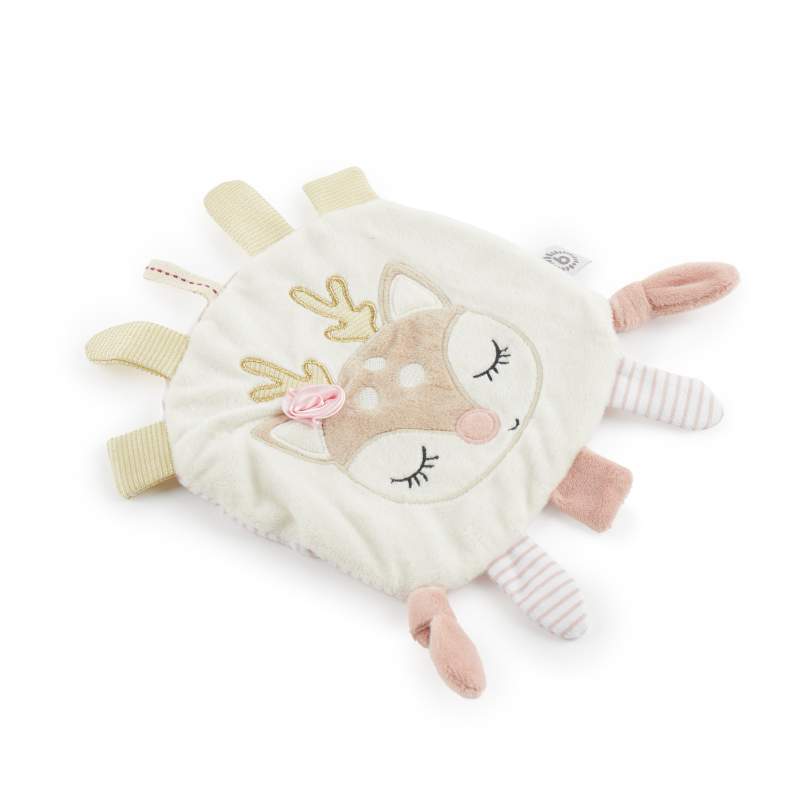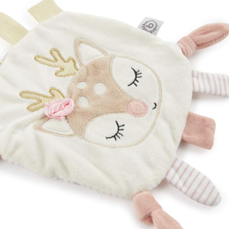 Das Reh-Knistertuch von Bieco ist ein treuer Begleiter in den ersten Lebensjahren Deines Babys. Das Reh sieht nicht nur super süß aus, sondern lädt sowohl zum Kuscheln als auch zum Spielen ein. Der weiche, kuschelige Stoff fühlt sich schön und geschmeidig an. Verschiedene Strukturen fördern den Tastsinn und schicken die kleinen Hände auf Entdeckungsreise. Die Knisterfolie im Inneren spricht den Hörsinn deines Babys an. Babys lieben Tags und Knoten! Daher hat unser Knistertuch extra viele davon, zum Ziehen, Nuckeln und Fühlen. Die dezenten Farben machen das Tuch zu einem stylischen Begleiter, der Eltern und Kind begeistert.