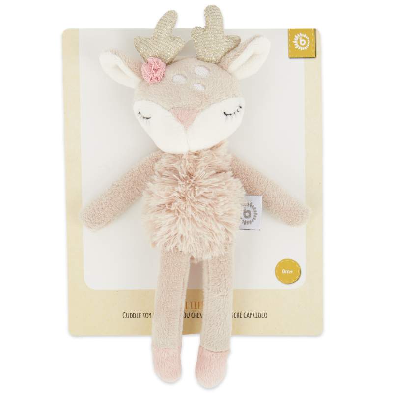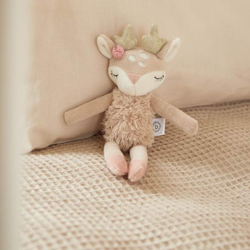 Ein Freund für alle Fälle: Das niedliche Reh mit dem verträumten Blick wird Deinem Baby ein treuer Begleiter in allen Momenten sein. Durch die unterschiedlichen Stoff-Strukturen bietet das Plüschtier viele Greif,- und Tast-Möglichkeiten. Das Kuscheltier ist samtig weich und wird Dein Baby tagsüber bei Abenteuern sowie nachts im Land der Träume begleiten- Freude und Wärme schenken. Ella ist Kuscheltier und Rassel in einem. Ihr sanftes Rasseln weckt die Aufmerksamkeit deines Babys und schult das Hörvermögen. Mit einer Größe von etwa 22 cm, hat das flauschige Reh die perfekte Größe zum Drücken und Schmusen und ist leicht zu greifen für kleine Babyhände.