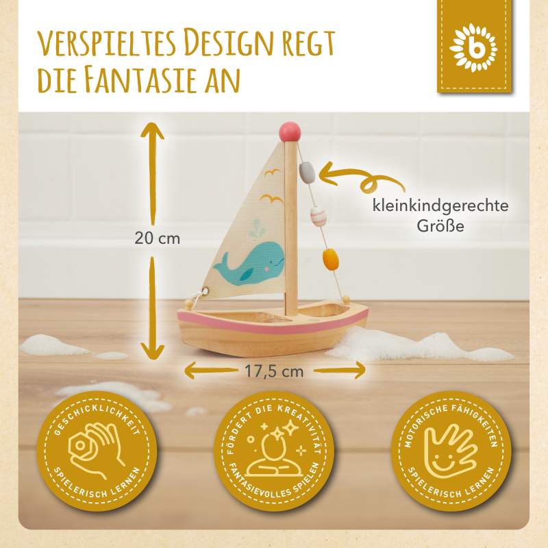 • Lieferumfang: 1x Segelboot Kinder Spielzeug. Größe ca. 17,5x9x20 cm. Material: Holz. Gewicht ca. 113 g