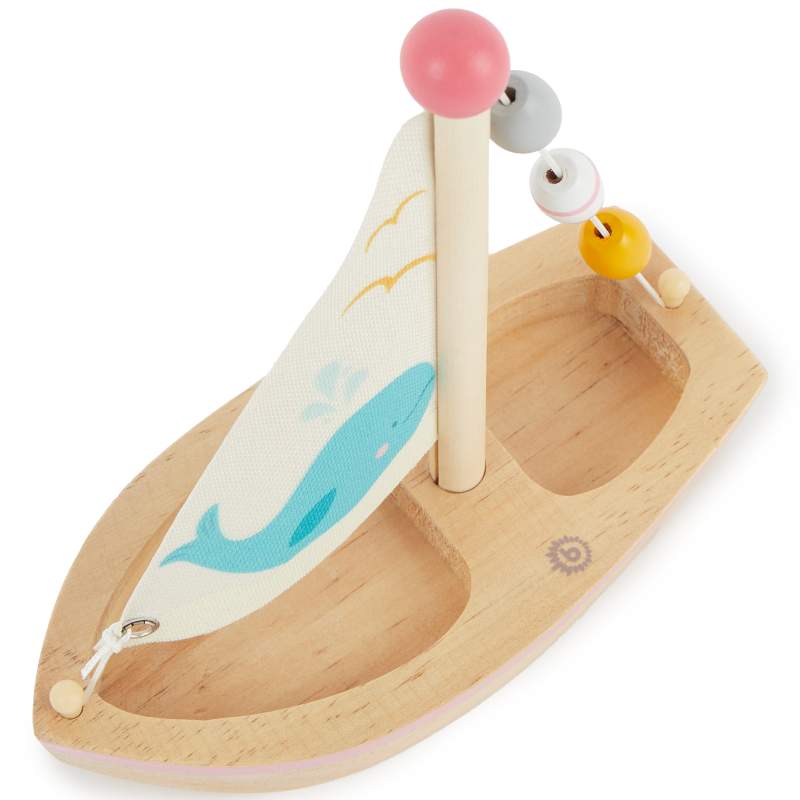 Für Weltenbummler und Columbus von morgen: Das Segelschiff aus hochwertigem Holz lässt keine Langeweile aufkommen. Egal ob in der Badewanne, im Planschbecken, am Meer oder in der Sandkiste - das kleine Schiff ist ein absoluter Allrounder, welches der Fantasie keine Grenzen setzt. Ausgestattet ist es mit einem Segel auf dem ein süßer Wal abgebildet ist, sowie einer Segelschnur mit drei unterschiedlichen Perlen. Die rosa Farbakzente verleihen dem Boot seinen besonderen Charme und das Innere des Schiffes bietet Platz für kleine Spielfiguren. Das Boot hat eine Größe von etwa 17,5x9x20 cm bei einem Gewicht von 113 g. Die Marke Bieco steht seit vielen Jahren für höchste Qualität und innovative Produktentwicklung. Unsere Spielwaren für Babys und Kleinkinder unterliegen allesamt den strengsten Richtlinien deutscher Produkt- und Sicherheitsstandards. Bieco möchte Kindergesichter zum Leuchten bringen, deshalb werden alle Designs für unsere Kleinen mit Liebe gefertigt. Artnr: 24023429
