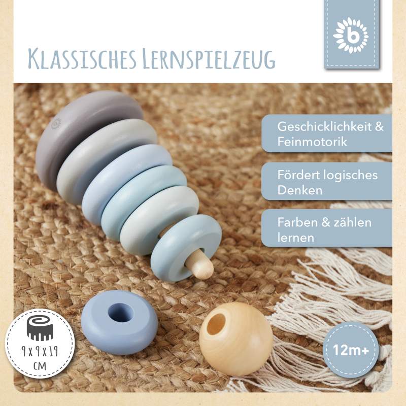 • PÄDAGOGISCH WERTVOLL: Dieser Stapelturm Baby mit runden Holzbausteinen ist ideal zum Stapeln, Bauen und Lernen. Er stärkt die Geschicklichkeit und Feinmotorik sowie die Fähigkeit, Größen zuzuordnen, auf spielerische Art