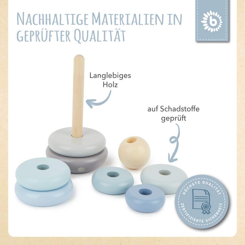 • NACHHALTIGKEIT: Das Stapelspiel ist aus Holz gearbeitet im Scandi-Chic mit zeitlosen Farben. Ein Klassiker für jedes Kinderzimmer und mehrere Generationen.